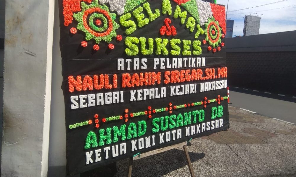 Karangan bunga itu sebagai bentuk ucapan selamat atas pelantikan Kajari Makassar, Nauli Rahim Siregar.