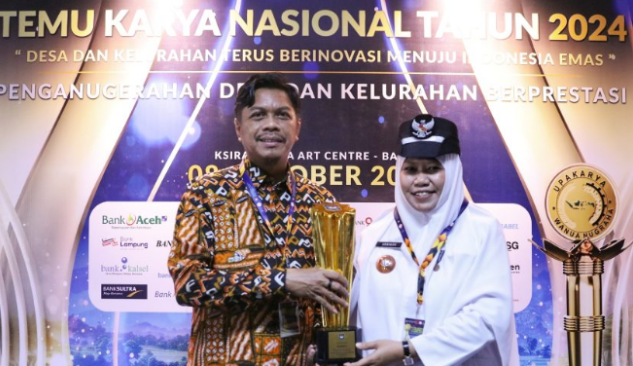 Penghargaan tersebut diserahkan dalam acara Temu Karya dan Penghargaan Desa dan Kelurahan Berprestasi yang berlangsung di Gedung Ksirarnawa, Denpasar, Bali, pada Selasa, (8/10/2024).