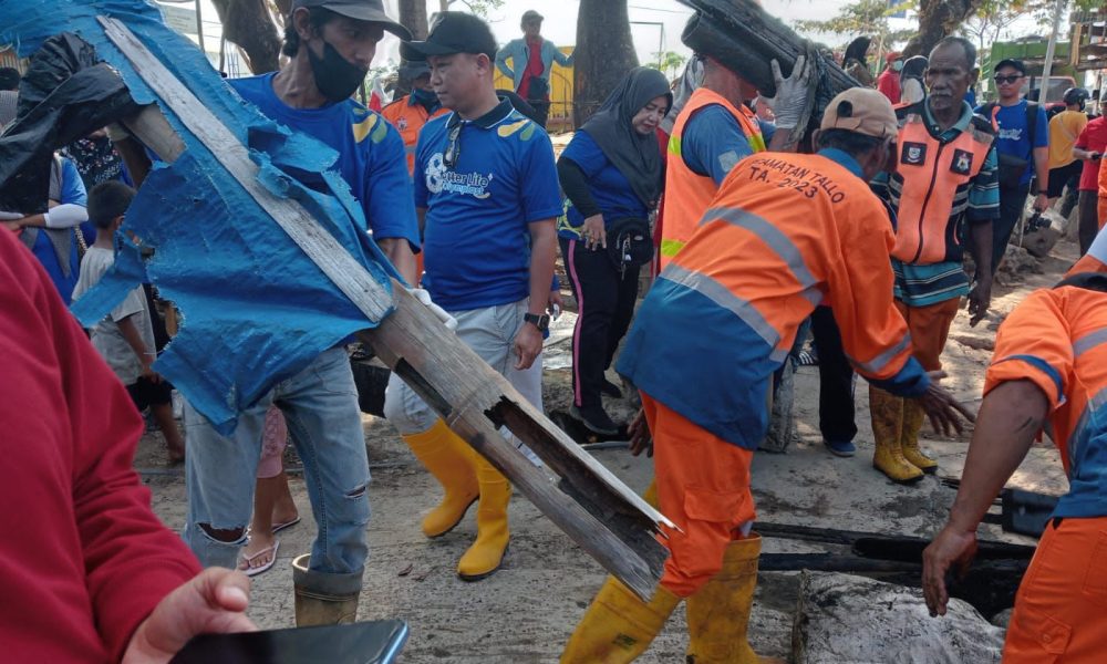 Camat Tallo, Alamsyah Sahabuddin bersama Pandawara Group melakukan bersih-bersih di Kampung Nelayan, Kelurahan Tallo, Kecamatan Tallo, Kota Makassar.